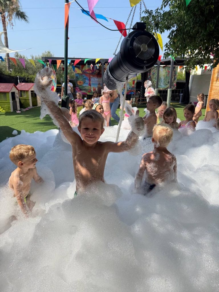 Бассейн: аквапарк, купание, душ. Дети, которые не идут в бассейн, играют в водные игры на суше